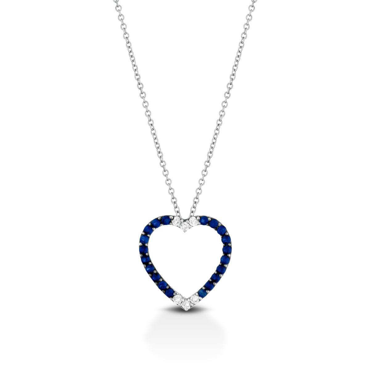 Girocollo in oro bianco 18kt 750/000 con vari diamanti naturali di taglio tondo brillante dal peso complessivo di ct0.07 di colore bianco extra "F" di purezza vs e vari zaffiri dal peso complessivo di ct0.36