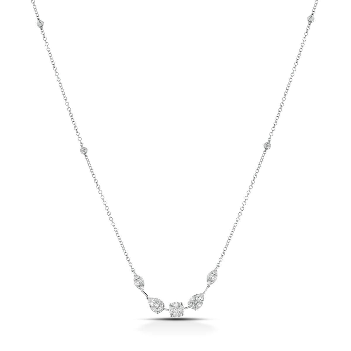 Girocollo in oro bianco 18kt 750/000 con vari diamanti naturali di taglio tondo brillante dal peso complessivo di ct 0.81 di colore F di purezza vs